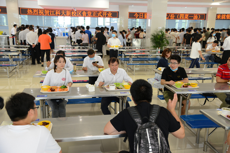 校党委书记葛世伦与船海学院2018级研究生张一兆、经管学院2018级大二学生柳冰媛、2017级学生贺子高等边吃边聊,聊餐厅、聊公交路线、聊社团活动场地、聊未来期许,坦诚交流,面对面解答同学们心中的疑惑,让大家放心。校党委书记葛世伦告诉大家,新校区环境更加优美,学习条件、住宿环境都得到了极大的改善,希望大家珍惜学校的资源,本科生要潜心学习,努力掌握必要的知识和技能,研究生要刻苦钻研,取得更多的学术成果,大家要在江科大追寻自己的梦想,实现自己的目标。