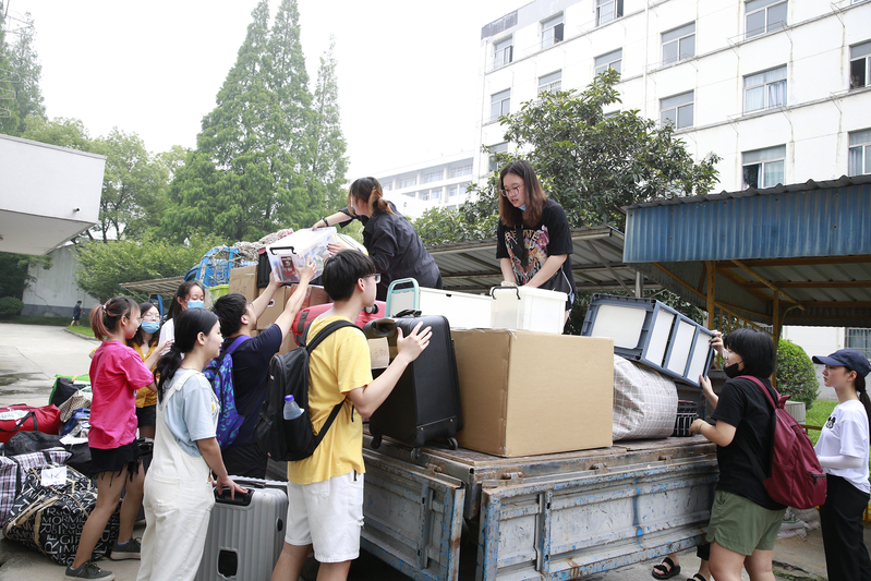 同学将行李搬上运输车辆