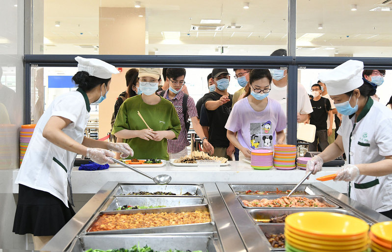 在新校区西苑食堂简短的揭牌仪式后,一楼大厅正式开业。土建学院2018级土木工程专业的研究生沈娇看到宽敞明亮的餐厅,还有中央空调,很高兴地告诉记者,这里的环境很好。电信学院2019级水声工程专业的研究生李鹏飞吃了新校区的第一顿餐,感觉菜品丰盛,味道很好,个人体验超赞。机械工程学院机械设计制造专业的关震也有同感,觉得新校区食堂味道好,选择多,他还特别推荐食堂的虾。后勤管理处处长、后勤集团总经理胡爱祥告诉记者,今天后大家对第一顿饭感觉味道不错,比较满意,作为后勤保障部门,要通过自己的努力在平时的保障服务过程中让师生都能满意。目前,新校区公寓里的家具、宿舍的空调、窗帘、直饮水、洗衣房等都已到位,除此以外,还有自助打印机、自助售货机等都能满足同学们的生活需求,希望同学住进来后,感受到新校区比较好的生活条件和环境,更好地学习,更好地生活。