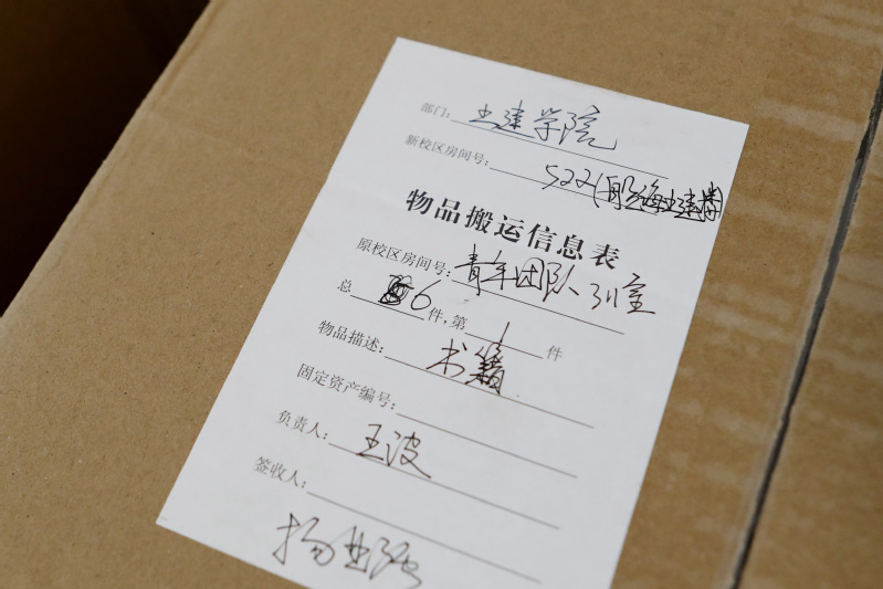 记者发现每一件搬运的物品上边都贴有一张表格,上面有部门、新校区房间号、原校区房间号、物品编号、物品描述、固定资产编号、负责人、签收人等信息。潘志宏告诉记者:“《物品搬运信息表》是学院精心设计印制的,每一件物品都有对应的信息表,上面写有责任人,落实具体责任也保证搬迁的顺利进行。”为了确保国有资产不流失,上车核对信息、签字,下车核对信息、签字,“我们任何一件物品都不能遗失,都不能丢掉。”刘清生告诉大家,搬迁工作是学院暑期工作的重中之重,所有工作都要服务于搬迁。