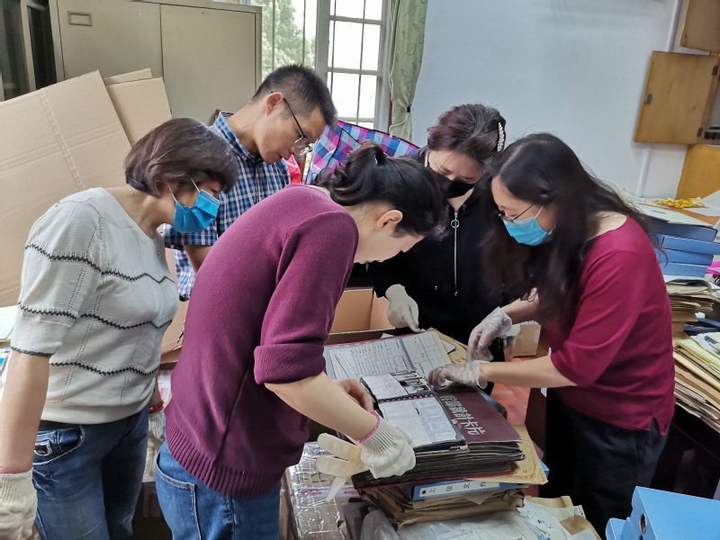 在人事处,整理物品时老师们发现了好些可以放进学校校史馆的“宝贝”,有早期的干部统计卡片册、有老船校资料箱,还有几十年前上海大公职业学校毕业证书和成绩单。历史悠久的学生成绩单,引来了大家围观和讨论。这些浸染着岁月痕迹的纸张已经发黄,老师们小心翼翼隔着手套细看,将它们一一放入文件袋中,期待在新校区校史馆展示给更多后来者参观。为保证搬迁过程中档案、文件资料等物品完好无损,人事处制定了详细搬迁方案与应急预案,确定每项工作的具体责任人员。搬迁过程中,工作人员分工明确、各司其职,大家发扬不怕苦、不怕累的优良作风,连续加班奋战。