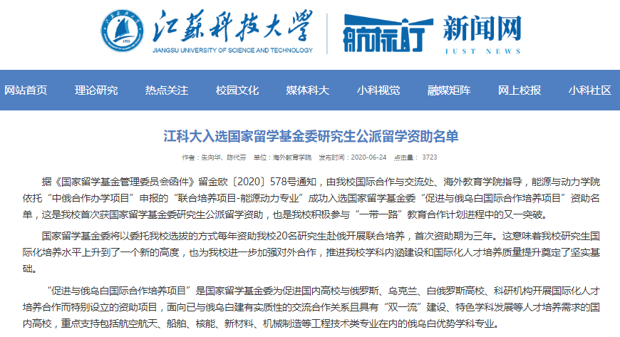 2020年“联合培养项目-能源动力专业”成功入选国家留学基金委研究生公派留学资助名单,国家留学基金委以委托永利官网选拔推荐的方式每年资助永利官网20名研究生赴俄开展研究生联合培养,首次资助期三年。
