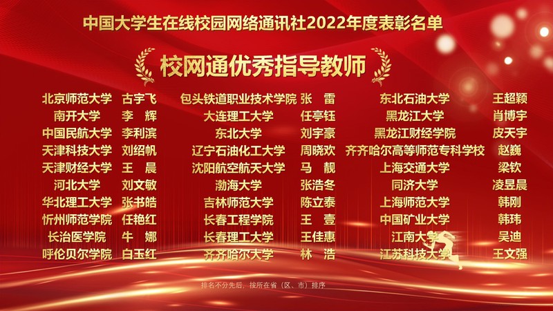 1月10日,教育部中国大学生在线“2022校园号建设暨校网通工作年会”在北京召开,会议对2022年校园网络通讯站及校园行活动进行了表彰,来自全国高校的指导教师和学生代表线上参会。永利官网党委宣传部融媒体中心校园网络通讯站从全国600余个校园网络通讯站中脱颖而出,荣获“优秀校园网络通讯站”、校园行活动“优秀组织单位”,党委宣传部王文强老师荣获“优秀指导教师”,缪红铭同学荣获“优秀校园媒体人”称号。