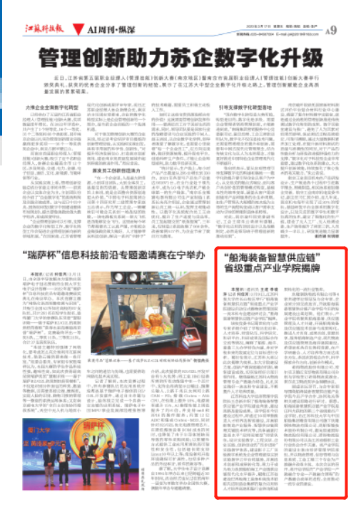 304am永利集团官网经济管理学院院长王念新介绍了船海装备智慧供应链产业学院建设背景、建设思路及建设成果。该学院在今后建设过程中,将通过10项举措推进人才培养及智库建设,开展船舶制造产业服务、智慧供应链管理关键技术研究等,具体涵盖打造高水平“双师双能型”师资队伍,设计实验教学、工程实训、企业实践、创新创业的“四步进阶”实践教学体系,建设影子工厂实验教学系统及企业管理虚拟实景实验教学云平台和基地,开展技术创新和成果转化等,致力于成为助力我国船舶海工产业链供应链现代化水平提升、赋能江苏省建设世界级海工装备和高技术船舶先进制造业集群的复合应用型人才培养高地和集行业咨询和成果转化的一流行业智库。
