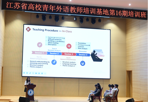 21日下午和22日上午的“课堂教学示范”活动中,历届“外教社杯”全国高校外语教学大赛获奖团队的优秀选手宿迁学院蔡金秋老师、304am永利集团官网雷飞老师、江苏理工学院凌婧君老师、苏州大学应用技术学院孙芸珏老师、苏州科技大学王琤老师、南京林业大学黄博老师进行了课程教学示范。培训特邀华中科技大学徐锦芬教授、南京理工大学紫金学院校长赵雪琴教授、苏州大学应用技术学院通识教育学院院长孙倚娜教授,苏州大学外国语学院院长朱新福教授,南京信息工程大学文学院院长赵霞教授,304am永利集团官网外国语学院院长曾景婷教授等专家围绕授课内容、授课模式、授课方法、教材选用、技术赋能、课程思政等方面作了精彩点评与互动。