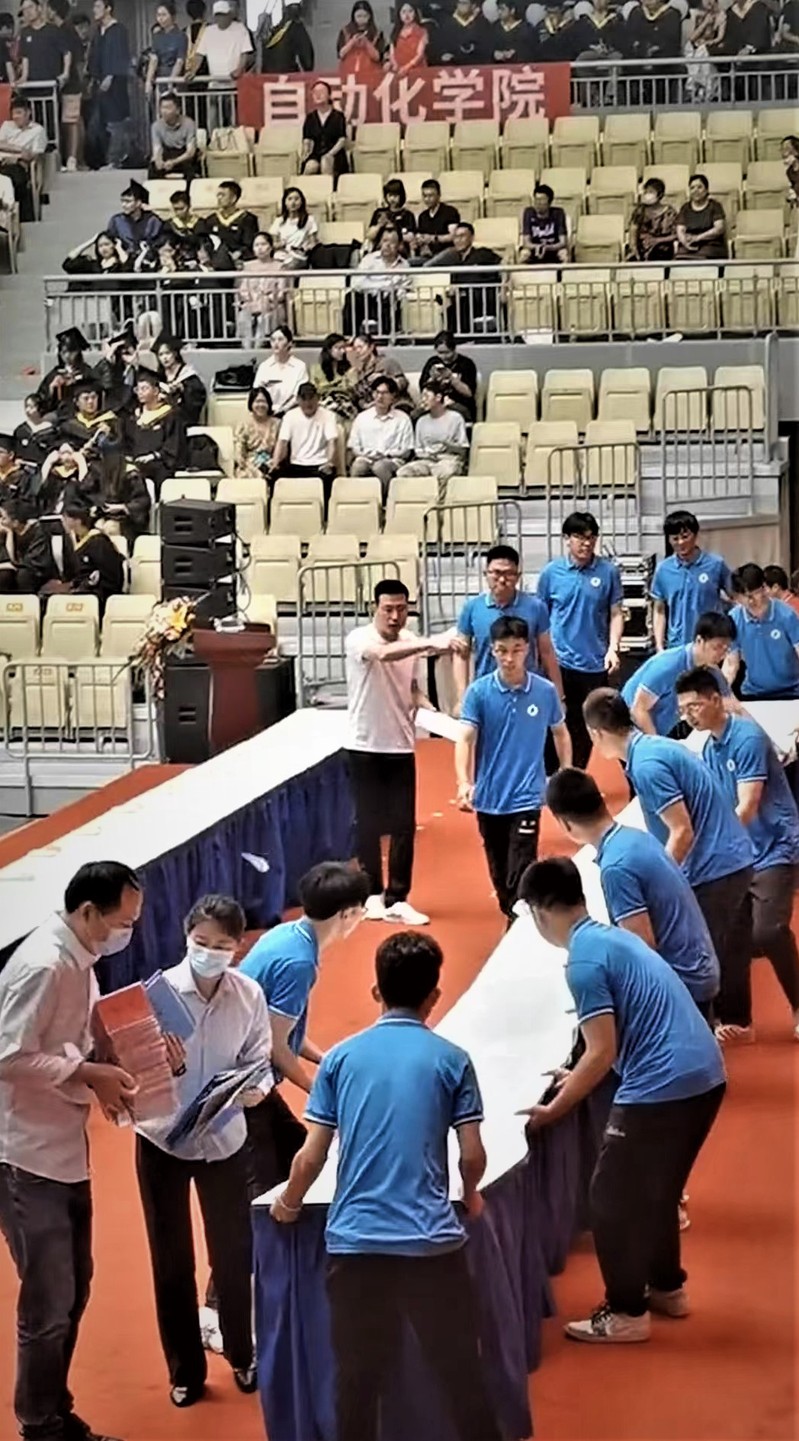 是你们在台前的尽职尽责、坚守岗位,是你们在幕后的无私奉献、默默付出,是你们高度的责任感与使命感,为这场盛大的毕业典礼“保驾护航”,谢谢你们!
