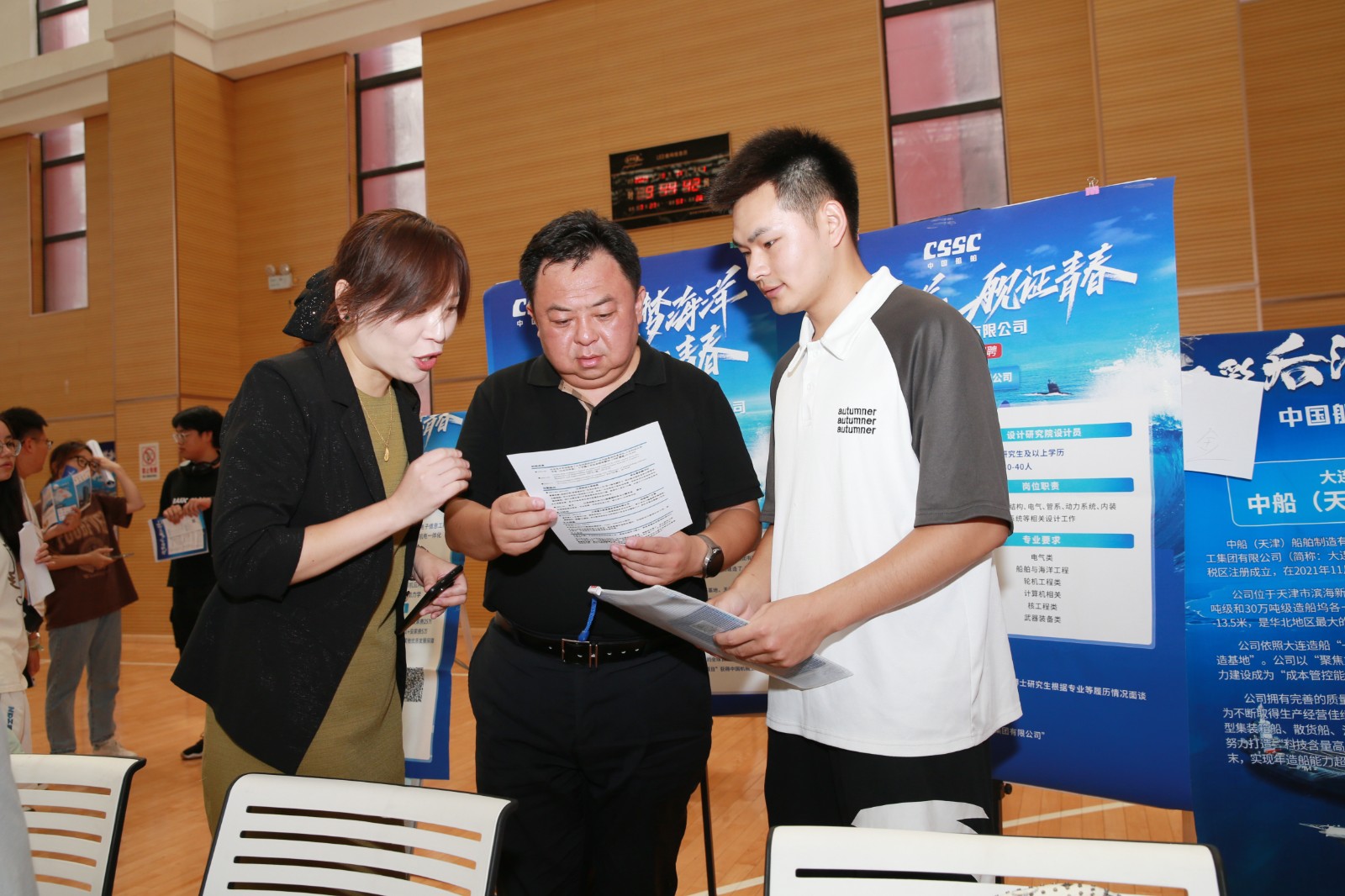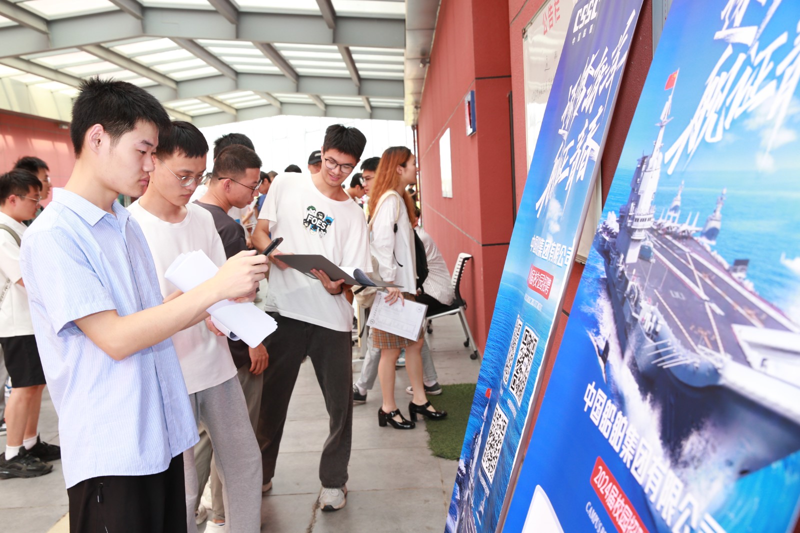 本次招聘会共54家用人单位参会,专业需求覆盖各个学院,吸引了近4000名应届毕业生前来挑选岗位。同学们积极与用人单位代表交流,踊跃投递简历,407名毕业生现场达成了初步就业意向。招聘会前期,各学院主动与企业对接,广船国际、沪东中华、黄埔文冲、第七〇八研究所等单位向重点需求专业的学生做宣讲,宣讲会有效搭建了单位与毕业生们之间的交流平台,“304am永利集团官网的培养方向和我们企业需求相匹配,学生专业基础扎实,培养潜力大。学生们投递热情也很高,已经收到了一百来份简历。”中船黄埔文冲船舶有限公司人力资源部赵李君介绍道。