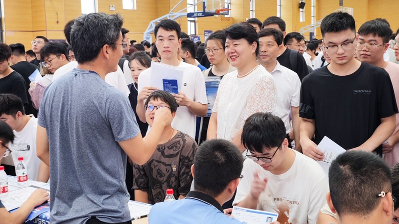 9月11日,永利官网举办中国船舶集团有限公司2024届校园专场招聘会。校长嵇春艳、副校长胡爱祥深入招聘会现场,了解用人需求,并与应聘毕业生亲切交谈。