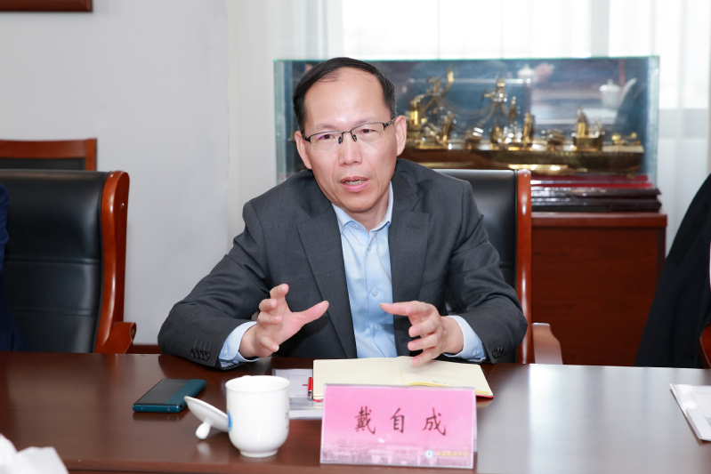 会上,周南平对戴自成一行的到来表示热烈欢迎,对华为在科技创新领域取得的成果表示称赞,同时对华为长期以来给予学校的支持和帮助表示感谢,介绍了学校的基本情况、办学历史及特色优势,特别是近年来在船舶、海洋、蚕桑等领域所取得的最新前沿成果。周南平指出,信息技术是学校实现跨越式发展的重要支撑,华为作为行业领军企业,一直致力于国家高水平科技自立自强和教育数字化,是学校发展的理想合作伙伴。周南平表示,希望以此次调研交流为契机,与华为在人才培养、科技创新、信息化建设等领域开展合作,以数字化赋能学校全面发展,共同为国家教育数字化作出贡献。