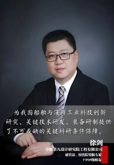 【校友简介】徐剑,1994年入学华东船舶工业学院机械制造工艺与设备专业,中船第九设计研究院工程有限公司研究员、国务院特贴专家、中船集团能力建设规划设计总师、长期担任国家和船舶行业具有重大影响力的科技基础设施项目和重大科学研究装置的设计负责人。