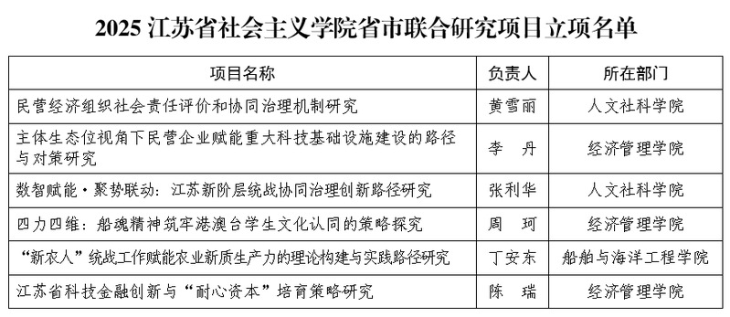 近日,江苏省社会主义学院公布了2025年度省市联合研究项目立项名单,永利官网6个项目获批立项,数量位居全省第一。