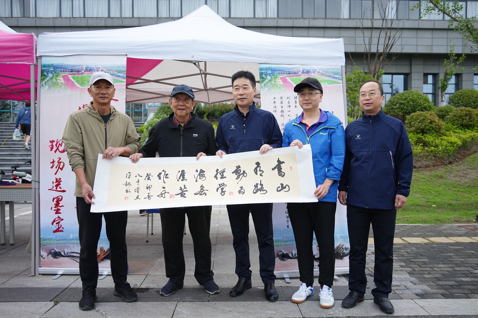 引人注目的是,原体育部主任刘守嘏教授现场挥毫赠与参赛师生、校友,赢得了参赛者的广泛赞誉。杨建新与刘教授亲切交流,并对“体育运动强身健体、文化传播润泽心灵、体育精神赋能成长”的育人理念表示赞许。