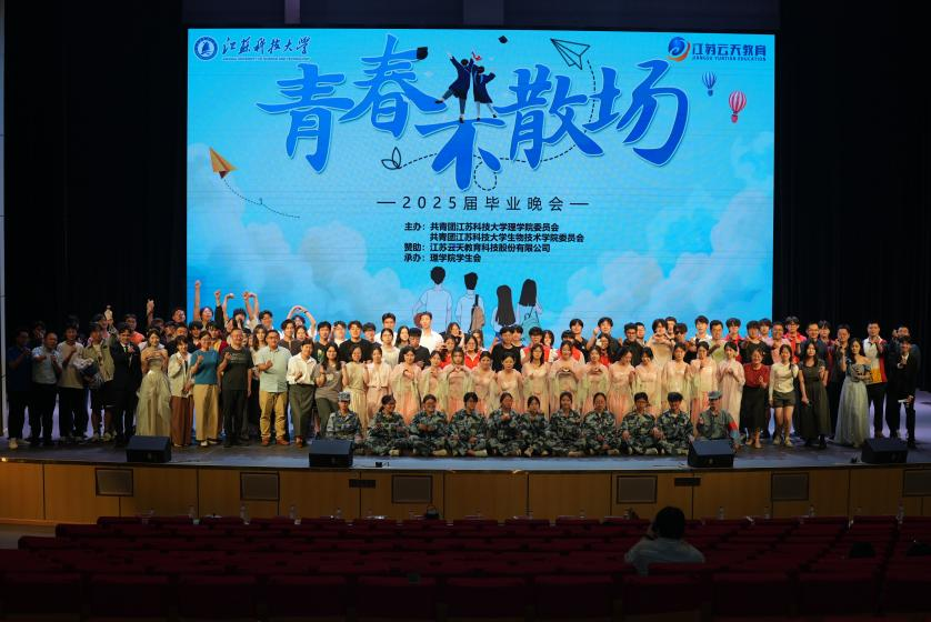 6 月 11日晚,理学院与生物技术学院在长山校区船苑剧场联合举办 “青春不散,逐梦远航” 2025届毕业生欢送晚会。理学院院长戴俊、副院长朱明星、院党委副书记周志辉,生物技术学院团委书记邹金城,两学院的系主任、毕业班班主任、全体辅导员和毕业生共600余人齐聚一堂,共同见证这场充满青春活力与温情的视听盛宴。