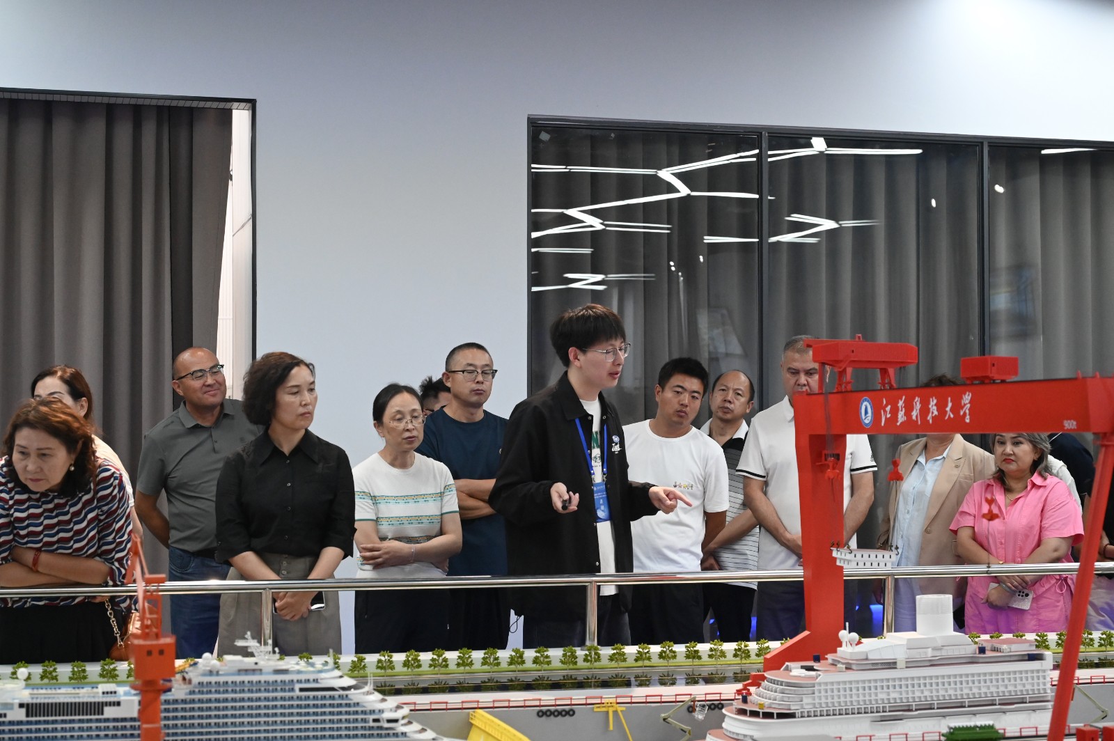 在船舶文化馆,学员们参观了古代船舶、民用船舶、海洋工程、军用舰船、大国重器等五个展区,讲解员结合一件件展品,生动讲述了江科大人践行投身船舶工业、服务地方经济发展、服务海洋强国建设的故事;在船舶制造仿真实验室,学员们了解了智能制造发展现状,领略了智慧船厂解决方案。