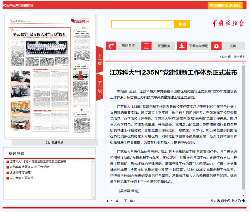 江苏科大各责任单位负责推进落实“五大党建赋能工程”各项重点任务。各二级党组织围绕“1235N”党建创新工作体系,系统谋划、统筹推进各项工作,创新工作方法,开展主题鲜明、形式多样的党建活动,增强党建工作的吸引力和感染力,打造一批党建标志性成果,全面推动党建与事业发展“一融双高”。该校“1235N”党建创新工作体系,积淀着学校90余年忠诚使命的红色基因,承载着江科大人兴船报国的蓝色梦想,标志着学校党建工作迈上了一个新的更高起点。(吴秀霞 雷锋)