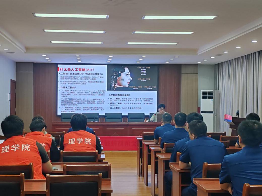 下午2时,活动在消防站会议室正式拉开帷幕。计算机学院的学生首先为消防指战员带来了一场深入浅出的AI科普讲座。他从人工智能发展简史切入,系统讲解了AI技术的三大核心架构,并通过生动的消防装备类比,帮助指战员理解抽象的技术概念。