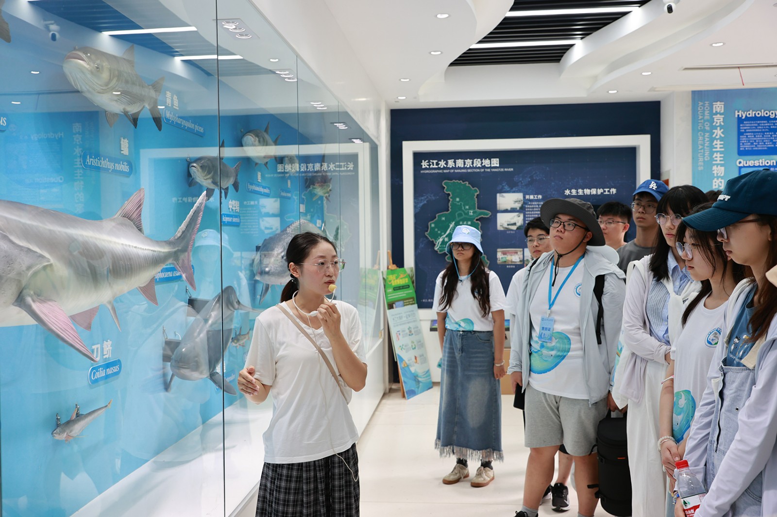在目前唯一能够在城区中心稳定观察到长江江豚活动的城市——南京,营员们在南京江豚水生生物保护协会工作人员的带领下,探访长江南京段江豚栖息地,并走进长江微笑驿站、江豚书屋、长江水生生物科普馆和长江江豚监测站等主题场馆,系统学习长江江豚的生物学和生态学知识,了解长江鱼类的多样性以及如何开展长江渔业资源增殖放流。