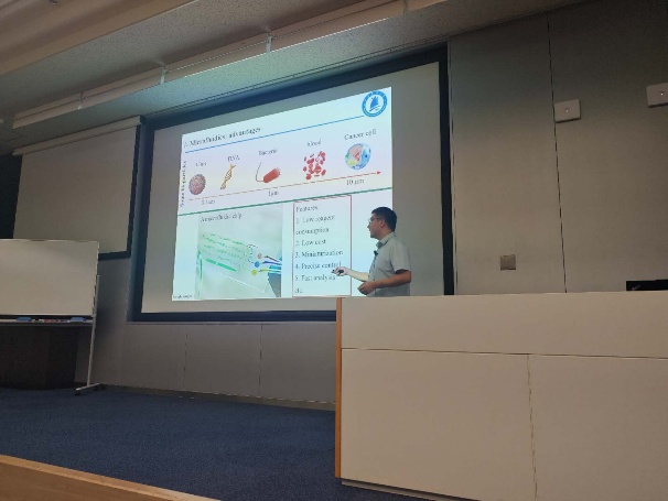 9月10日,永利官网机械工程学院张天龙副教授应邀赴日本奈良先端科学技术大学院大学开展专题讲座。讲座主题为“基于被动式微流控的微/纳米功能颗粒分离:简便、高效与精准(Passive Microfluidic Separation of Micro/Nano Functional Particles: Simple, Effective, and Precise)”。