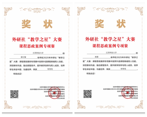 近日,2025年外研社“教学之星”大赛课程思政案例专项赛获奖名单正式公布。外国语学院多位教师凭借扎实的专业功底、创新的教学设计和深厚的课程思政育人理念,在主赛道中表现突出,取得历史性突破。蒋慧、谭方黎老师荣获特等奖;雷飞、曹莉、王蓓老师荣获一等奖;张学谦老师荣获二等奖;吴丹娜老师荣获三等奖。无论从获奖数量、等级,还是参与人数来看,均创学校参加该赛事以来最佳成绩,也位居省内高校首位。