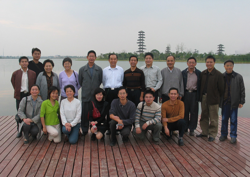 2005年,第一批派驻到校区工作的教师在暨阳湖畔合影