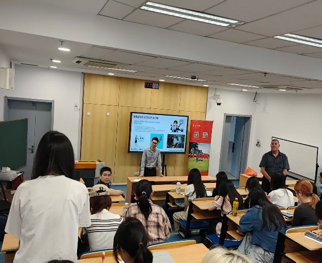 活动伊始,项目经理周潇致欢迎辞,简要介绍活动议程与目标。随后,Gabriel Sun经理以“墨尔本:机遇与协同”为主题,系统介绍了墨尔本的教育资源、城市活力及中澳合作潜力,为学生呈现了国际化发展的现实图景。