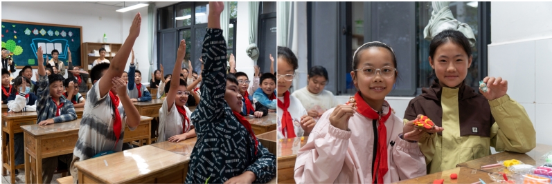 粮食节约,人人有责,304am永利集团官网学子积极用行动宣传节约粮食精神,凝练“食育科普”系列微课,深入小学与社区,打造实践育人课堂。在镇江市实验小学官塘分校,志愿者团队开展“食育种子”计划:通过“一粥一饭,来之不易”“世界各国代表性美食”等动画短片,生动讲解粮食从田间种植到餐桌食用的全过程;组织粘土创意实践活动等趣味游戏,孩子们化身“小小美食家”,在志愿者的指导下,用五彩粘土捏制米饭、面条、蔬菜、面包等各类食物。用童趣作品传递节约理念,将粮食安全的种子播撒进少年儿童心中。