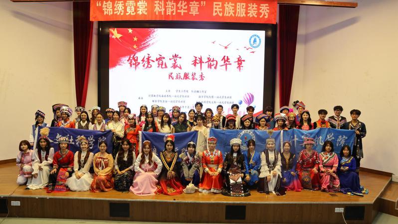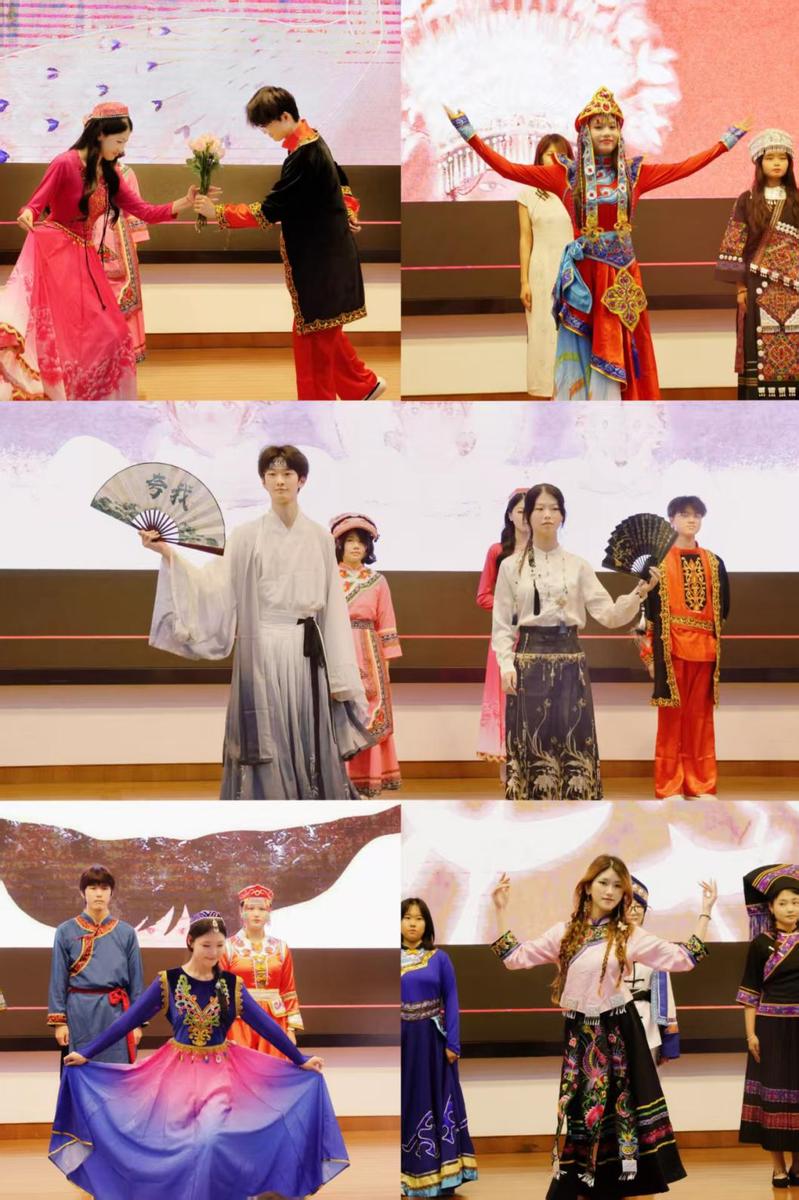 活动由学生工作处、红石榴工作室主办,计算机学院海韵书院一站式学生社区、海洋学院灯塔一站式学生社区、粮食学院金谷一站式学生社区、人文社科学院文轩一站式学生社区联合策划,现场数百名师生共同见证。作为校庆文化活动的关键环节,活动以 “三篇章” 串联,将民族文化与校庆氛围深度融合 —— 第一篇章 “霓裳风华” 中,身着蒙古袍、苗族盛装、傣家筒裙等服饰的模特依次登场,民族服饰的精美纹样与精湛工艺,成为校庆舞台上展现中华优秀传统文化的生动载体,现场掌声与闪光灯交织,宛如 “流动的民族文化展”;第二篇章 “慧心巧思” 通过民族知识问答互动,将校史校训与各民族风俗、服饰特色相结合,让师生在参与中既深化对民族文化的认知,也强化对学校历史的认同,进一步拉近校庆与民族文化的联结;第三篇章 “弦歌雅意” 则以古筝独奏、古筝与吉他跨界演绎等节目,用传统与现代音乐的碰撞,呼应校庆 “文化共生” 的理念,传递 “音乐无界、民族同心” 的情感。