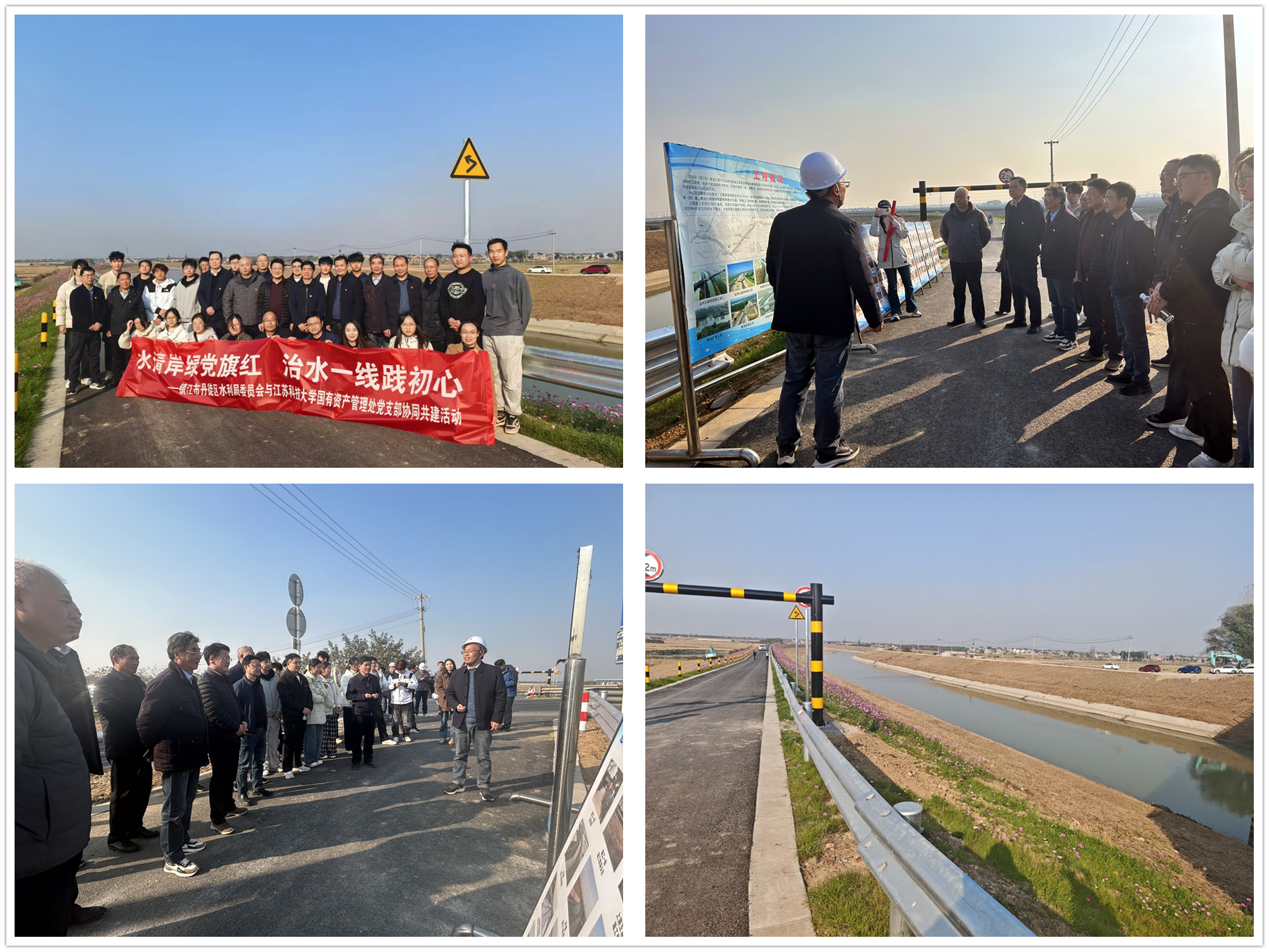 11月21日下午,国有资产管理处党支部联合环化学院“红桥社区”学生党员及丹徒区水利局党委,共同开展“水清岸绿党旗红、治水一线践初心”联合党日活动。通过实地走访水利工程、学习治水经验、感受科技兴农成果,党员们在实践中深化理论认知,以行动践行初心使命,为生态文明建设和乡村振兴注入红色动能。