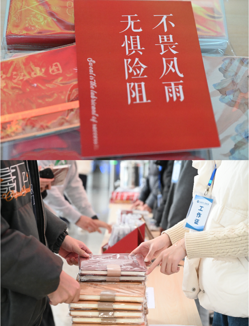 图书馆党总支为正处于紧张复习阶段的同学们准备了丰富的备考助力物资,涵盖文具套装、笔记本、精美书签、热饮茶包、旺仔牛奶等多种贴心实用的物品,同学们可以按需挑选领取。每一份物资都承载着图书馆对即将迎战考试的学子们的深切关怀与美好祝愿,在传递温暖的同时,也希望能为同学们注入信心与力量,助力大家以更好的状态迎接挑战、奔赴前程。