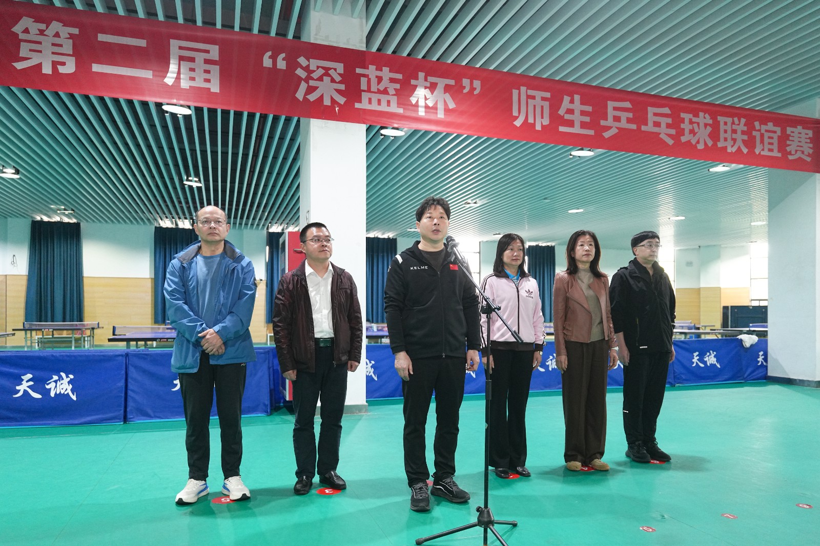 胡爱祥致开幕词。他指出,近年来永利官网群众体育事业蓬勃发展,竞技体育捷报频传,“爱体育、享健康、强体魄”已成为江科大人的共同追求。本届“深蓝杯”师生乒乓球联谊赛延续师生同场竞技的优良传统,既是技艺比拼的体育盛会,更是增进交流、凝聚情谊的重要平台。他希望,全体参赛人员秉持“友谊第一、比赛第二”的宗旨,以球会友、增进默契,赛出水平、赛出风格、赛出师生情谊,为营造和谐活跃、积极向上的校园体育文化氛围贡献力量。